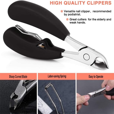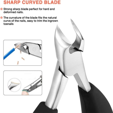 Nagelsax med vassa skärblad i rostfritt stål och med ett handtag som är lätt att greppa. Hjälper dig att klippa hårda och tjocka naglar. Speciellt lämplig för tjocka naglar, inåtväxta naglar, paronychia och fotnaglar med svampproblem.