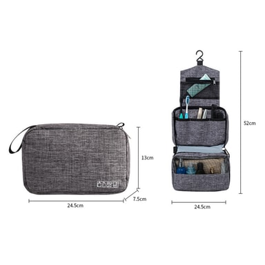 Bekväm rem: Med dess rem kan du bekvämt hänga väskan i ditt hotellbadrum eller på en krok, vilket ger dig enkel åtkomst till dina nödvändigheter samtidigt som du håller dem prydligt organiserade.