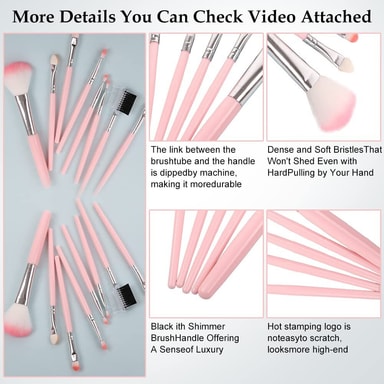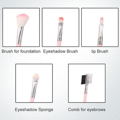 Sminkborstar med mjuka borst och ergonomiskt handtag. Satsen innehåller 5 olika sorters make-up-borstar för olika ändamål.