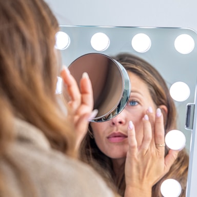 Ta din sminkning till nästa nivå med Sharper Image spegel P001310. Justera ljustemperaturen och ljusstyrkan, använd det löstagbara förstoringslaset och torka dina naglar medan du laddar telefonen.Läs mer om produkten