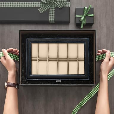 Klocklådan är mjuk på insidan och skyddar innehållet från repor, bucklor, smuts och andra skador. Den är också lätt att öppna och stänga.