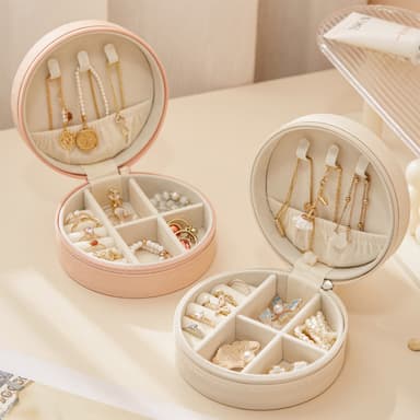 Denna resesmyckeskrin för kvinnor är liten och komplett, håller dina favoritsmycken organiserade och beställda. Utrustad med tunt flanellfoder, det är mjukt och bekvämt, skyddar dina smycken från repor och stötar.