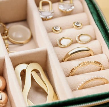 Liten smyckesförvaring med slitstarkt sammet på utsidan och med mjukt sammetsfoder på insidan. Ett smyckeskrin skyddar dina smycken från repor och damm och håller ordning på ringar, halsband och örhängen.