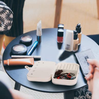 Detta smyckeskrin är en fin förvaring för dina smycken. Asken har plats för armband, örhängen, ringar, halsband och andra smycken. Den stängs med dragkedja och är prefekt som resesmyckeskrin.Läs mer om produkten
