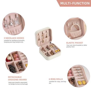 Litet fint smyckeskrin med tillräckligt mycket utrymme för dina smycken när du är på resa. Boxen är även perfekt som smyckesförvaring hemma. Utsidan är av PU-läder och insidan har ett mjukt flanellfoder som skyddar smyckena från repor och andra skador.