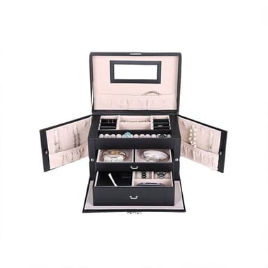 Smyckesskrin med 2 lådor och ett litet reseskrin - SvartLäs mer om produkten