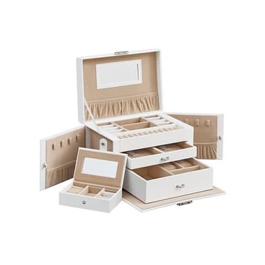 Smyckesskrin med 2 lådor och ett litet reseskrin - Vit