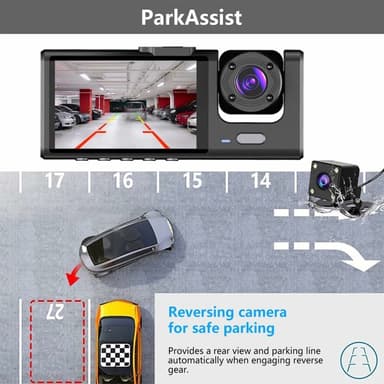 S1 fram + bak + interiör 3 objektiv vidvinkel 1080P HD bil DVR Dash Cam med parkeringsmonitor【Tre-linssystem】 Har främre, bakre och interiöra kameror för omfattande täckning av ditt fordon och omgivningar【High-Definition Recording】 Fångar skarp 1080PLäs mer om produkten