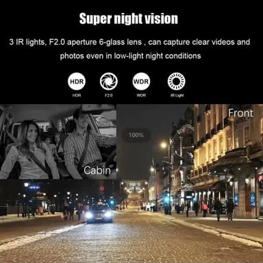 Fram och bak inspelning Dash Cam 1080P HD Night Vision Bilkamera Recorder (utan WiFi)【Vidvinkelobjektiv】 Vidvinkeln ger föraren ett fullt och komplett synfält under körning, utan att oroa sig för kollisioner bakifrån, och säkerställer bättre säkerhetLäs mer om produkten