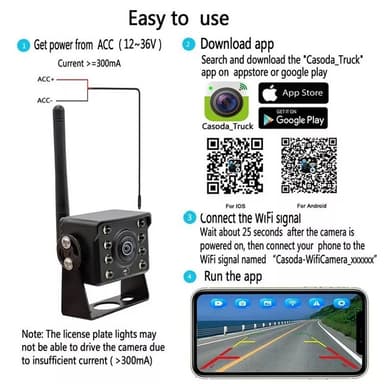 • Nattseende vidvinkel WiFi-kamera Vattentät backkamera trådlös för säker körning