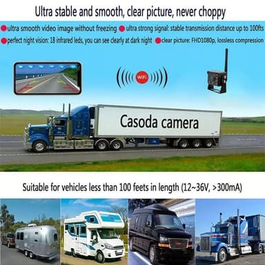 W102 Night Vision Wide Angle WiFi-kamera för lastbilar Vattentät Trådlös Backup-kamera bakifrån【Högpresterande chip】 Utrustad med ett högpresterande bildbehandlingschip, vilket säkerställer bilder av hög kvalitet med jämna bildhastigheter för äkta HDLäs mer om produkten