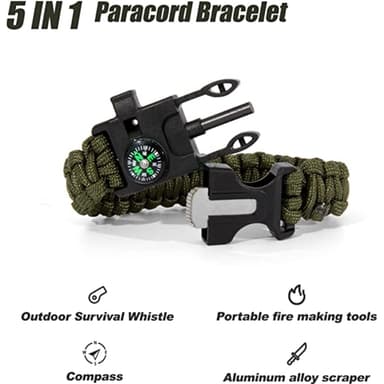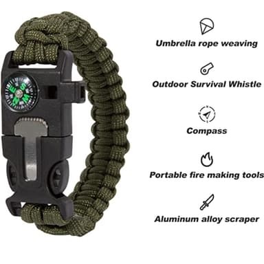 Överlevnadsarmband Paracord l Kompass , Visselpipa , Flintbrandstartare - Grön