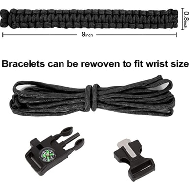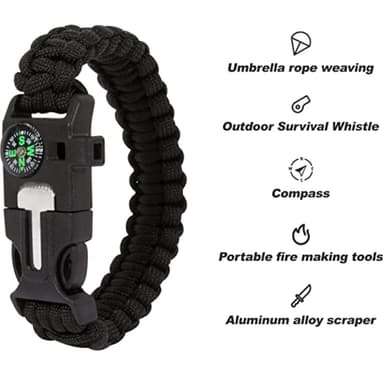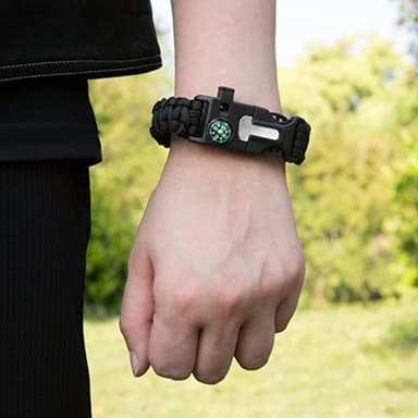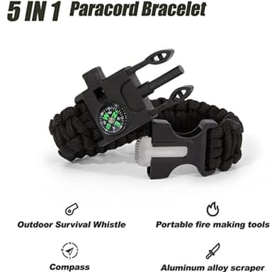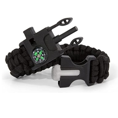 Överlevnadsarmband Paracord l Kompass , Visselpipa , Flintbrandstartare - Svart