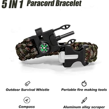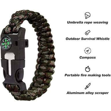 Överlevnadsarmband Paracord l Kompass , Visselpipa , Flintbrandstartare - Flerfärgad