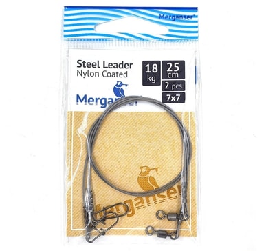 Merganser Steel Leader, 7x7 nylonbelagd + rullande sväng och fin knäppning