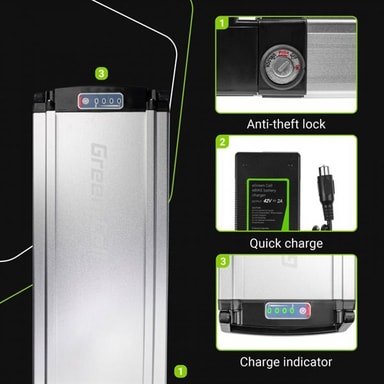 Green Cell elcykelbatteri bakre ställ 36V 12Ah 425x147x100mm med laddare - RCA