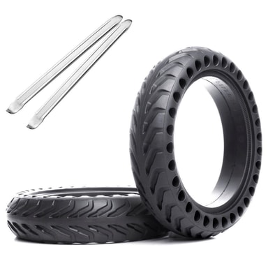 Slitstarka punkteringssäkra däck till M365, M365 Pro, Mi 1S, Mi Essential och Mi Pro2 elscooter. Däcken är tillverkade av stötdämpande gummi som tillför ger ett bra grepp. Installationen är mycket enkel tack vare de medföljande verktygen.