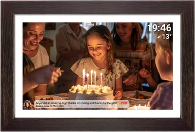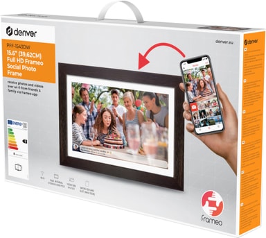 Visa dina vänner och din familj foton och videor från dina resor med Denver PFF 15,6" digital fotoram. Ladda bara ner Frameo-appen och visa dina foton och videor på den Wi-Fi-anslutna fotoramen.Läs mer om produkten