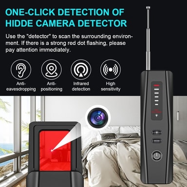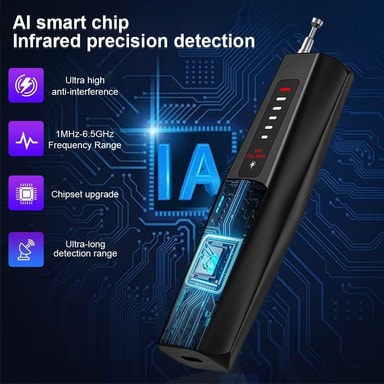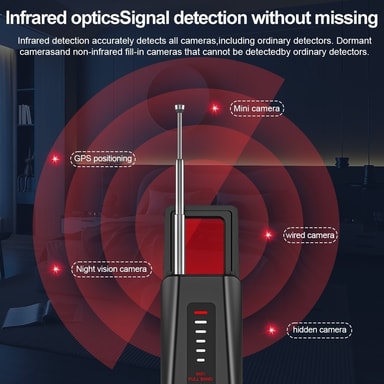 T011 Trådlös RF-signaldetektor GPS WiFi Tracker Kamera Buggdetektor Anti-spion infraröd skannerOmfattande säkerhetsskydd: Denna trådlösa detektor erbjuder komplett skydd mot hot som positionering, avlyssning, hemlig fotografering och smyginspelning.Läs mer om produkten