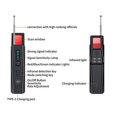 • Trådlös RF-signaldetektor Dold kameradetektor GPS-spårare Scanningsenhet
