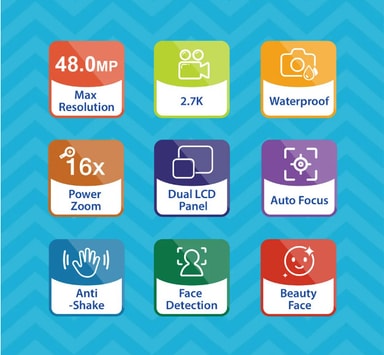 48MP och 4K digitalkamera: Kameran har en kraftfull 48MP bildupplösning och 4K videoinspelningskapacitet och den är utrustad med en 2,8 tums skärm för enkel visning. Detta säkerställer att varje bild och video du tar är detaljerad och verklighetstrogen - för att bevara dina värdefulla minnen på bästa sätt.