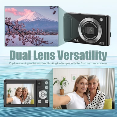 Dubbla objektiv: Fånga fantastiska selfies och hisnande landskap med de främre och bakre kamerorna. Kamerans dubbla kameror ger exceptionell flexibilitet för din fotografering. Med 3,0-tums LCD-skärm för enkel navigering och uppspelning.