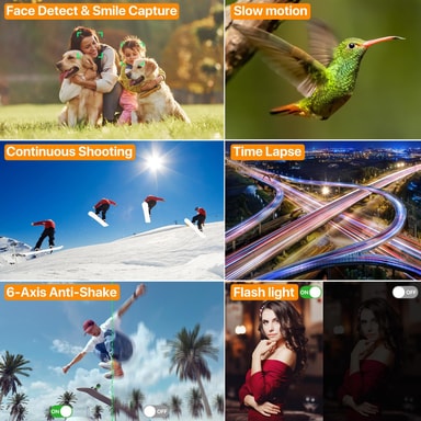 6-axig stabiliserings- och autofokusfunktion: Denna 5K-kamera använder 6-axlig anti-shake-teknologi för att ge högprecisionsstabilisering under fotografering. Den kompakta digitalkameran stöder autofokus, för att snabbare, tydligare och mer exakt fånga motivet du vill ha. Den klarar både starkt ljus och svagt ljus, och tack vare autofokusljus kan den fokusera exakt även vid sämre ljusförhållanden.