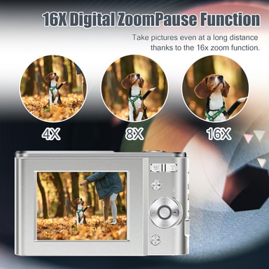 16x zoom: Fånga motiv på långt avstånd med hjälp av 16x zoom-funktionen. Zooma in och ut smidigt med enkla knapptryck.