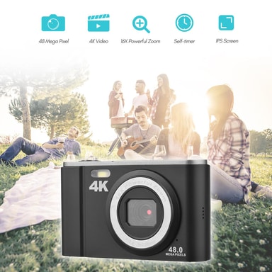 48MP och 4K digitalkamera: Denna kamera har en kraftfull 48MP bildupplösning och 4K videoinspelningskapacitet och den är utrustad med 2,8 tums skärm för enkel visning. Detta säkerställer att varje bild och video du tar är detaljerad och verklighetstrogen, för att bevara dina värdefulla minnen på bästa sätt.