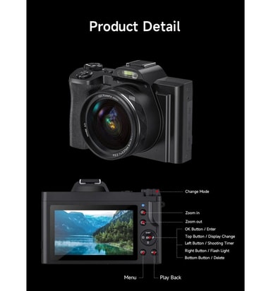 Lättanvänd nybörjarkamera: Kameran kräver inga komplicerade inställningar för att ta fantastiska bilder och videon. Den är idealisk för nybörjare och hobbyfotografer.