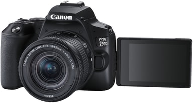 Canon EOS 250D är en ultralätt och lättanvänd systemkamera som gör det enkelt att ta högkvalitativa stillbilder och filmiska videoklipp. När det gäller användarvänlighet och funktioner är kameran lämplig för nybörjare inom fotografi och videografi, men även för mer avancerade entusiaster. Pekskärmen gör den enkel att använda: fotografera och fokusera med hjälp av kamerans pekskärm. Skärmen kan vinklas i sidled och framåt, vilket gör 250D till en utmärkt kamera även för twitchare. Med WiFi och Bluetooth LE är det enkelt att överföra bilder från kameran till din mobila enhet för delning.