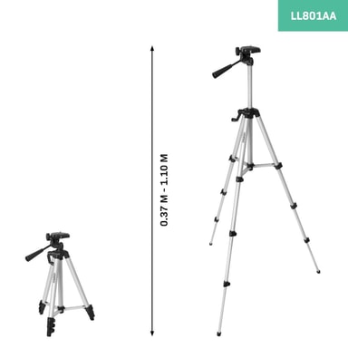På detta aluminiumstativ från VONROC kan du enkelt justera din linjelaser till rätt position. Stativet är justerbart från 37 till 110 cm, så du kan enkelt välja den lämpligaste höjden för ditt arbete. Detta teleskopstativ har en ¼ anslutning, Detta gör att det är möjligt att inte bara använda stativet till dina mätverktyg utan även till andra enheter med en ¼ anslutning. Tillexempel så kan du använda stativet till din kamera eller videokamera.