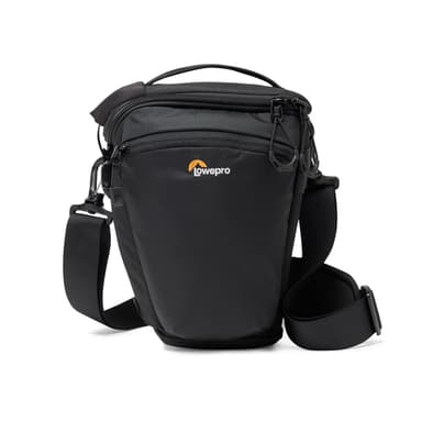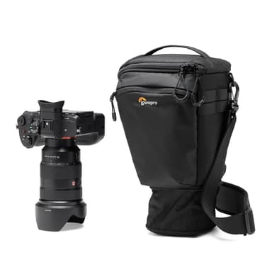 ProTactic TLZ 70 Pro AW III är utformad för fotografer som behöver en pålitlig och anpassningsbar väska för utomhusevenemang och jobb. Den rymmer ett fullformatskamerahus med porträttgrepp och ett objektiv upp till 24-70mm f2.8, med en expansionsdel för motljusskydd. Väskans design inkluderar ett snabbstängande spänne för snabb åtkomst och en invändig avdelare för att hålla kameran lättåtkomlig eller för att organisera ett kit med två objektiv.