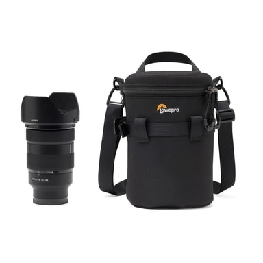Objektivfodralet har SlipLock™-fästsystem, vilket gör att det enkelt kan fästas på alla SlipLock™-kompatibla väskor eller bälten, t.ex. ProTactic III-ryggsäckarna och Utility Belt. Den har också extra horisontella band för stabilitet när den fästs på ett vanligt bälte och levereras med en avtagbar axelrem för ytterligare bäralternativ.