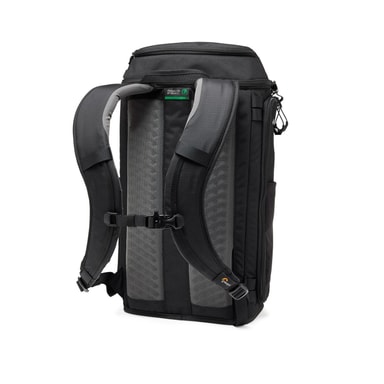 Ryggsäcken är konstruerad för komfort och har en gjuten EVA-ryggpanel med perforering och krusningsmönster för förbättrat luftflöde, en sele med dubbel densitet och ett SlideCam-bröstband för en konsekvent passform. Ryggpanelen har också en tunnel för att lägga till ett midjebälte för att förbättra lastfördelningen. Ryggsäcken står upprätt på egen hand, vilket gör det enkelt att hantera och komma åt din utrustning.