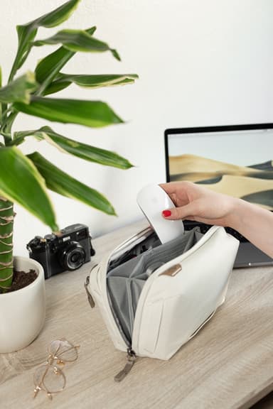 Peak Design Tech Pouch kameraväska är ingen vanlig väska. Dess hölje är gjort av 200D Nylon, insidan har vikbara avdelare som gör det enklare att sortera dina saker och den har ett hål för laddningskablar. Den är portabel och praktisk.Läs mer om produkten