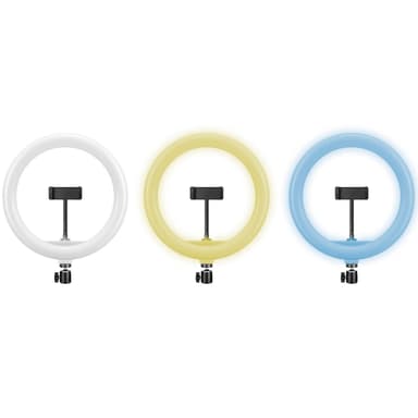CLICKRINGUSB består av två delar: Ett professionellt golvstativ (maximal höjd 1,6 m) och ett avtagbart ringljus som erbjuder olika ljusfärger (kallt / varmt / neutralt), för att säkerställa perfekt belysning i alla miljöer. Ringlampans storlek är 12”, har en smartphonehållare i mitten och sitter monterad på ett stativ som kan justeras till en maxhöjd på 160 cm. CLICKRINGUSB är även utrustad med en multifunktionell fjärrkontroll.