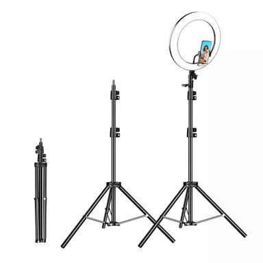 LED ringbelysning av högsta kvalité som ger ett attraktivt, mjukt och skuggfritt ljus. Perfekt som ljussättning för sminkanvisningar, vlogging, fotografering, selfies eller videoinspelning. För dig som ofta fotograferar och filmer i mörka inomhusmiljöer är den här LED ringlampan ovärderlig. Skapa proffsiga och vackra bilder och videor var du än befinner dig. Så vänta inte längre, beställ din LED ringlampa idag och ta dina bilder och filmer till nästa nivå! - filmerna blir skarpare, det krävs mindre handpåläggning och du kan snabbt lägga ut bilderna på t.ex. YouTube, Instagram, TikTok, Snapchat eller andra sociala medier. Stativet är justerbart mellan 70-210 cm.