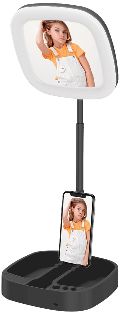 Picture Me Light-telefonhållare med spegel är en bärbar lösning för alla influencers och live-telefonsändningar som behöver ringljus, spegel och telefonhållare i en enhet.Läs mer om produkten