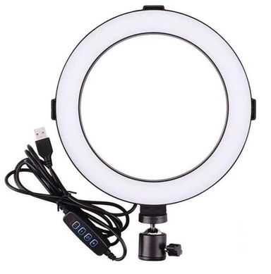 Med denna Ring light får du extra ljus vid foto, video eller sminkning. Ring lighten har ett fäste som du kan fästa i ett kamerastativ och kanterna på ringen har fästen för mobilhållare (dessa ingår ej). Lampan har 3 olika ljuslägen Vitt, varm vitt, och kall vitt ljus som även är dimbart. Ljuset styr du enkelt på strömsladdens kontroll.