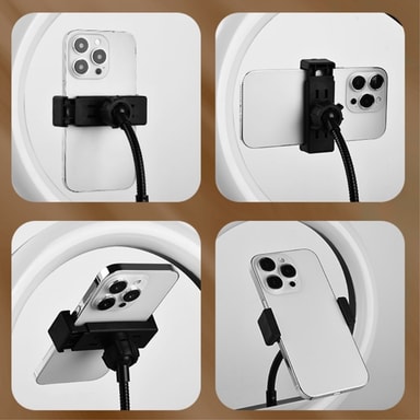 Telefonklämman är kompatibel med 4-7 tums mobiltelefoner. Telefonklämman är vridbar, så att du kan fotografera horisontellt och vertikalt