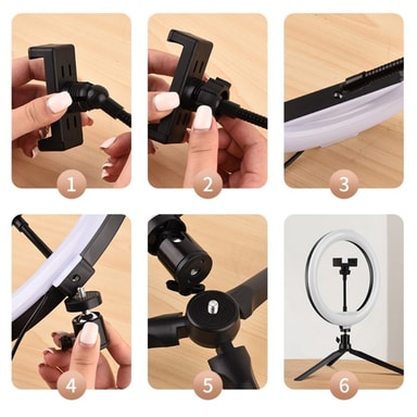 Desktop 10-tums LED Selfie Ring Light Stativ Stativ Telefon Clip Mount Vlogging Video Light Live Broadcast Kit