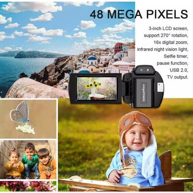 16X zoom och HDMI-anslutning: Kameran har många fantastiska funktioner och egenskaper som ansiktsavkänning, 3,0 tums skärm, stöd för uppspelning, HDMI-utgång, kan anslutas till datorn, stöder inspelning under laddning samt loopinspelning.