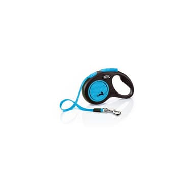 flexi New Neon infällbar bly storlek S , Tejp 5 m, för hundar upp till 15 kg, svart/neonblå