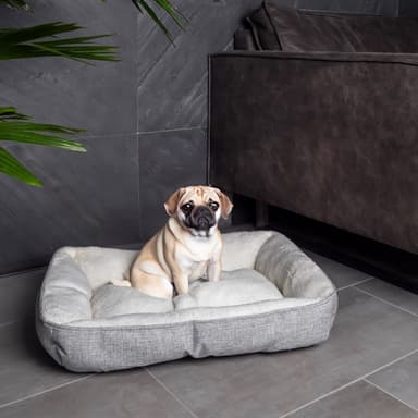Den mjuka ytan inbjuder till att krypa upp bekvämt. Den upphöjda kanten ger stöd åt hundens eller kattens huvud och nacke. En halkskyddad yta på undersidan förhindrar att dynan glider iväg och gör det enkelt att kliva på och av.