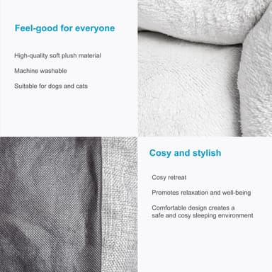Materialet består av mjuk plysch och polyester. Det är särskilt mjukt och håller ditt husdjur varmt och skönt.