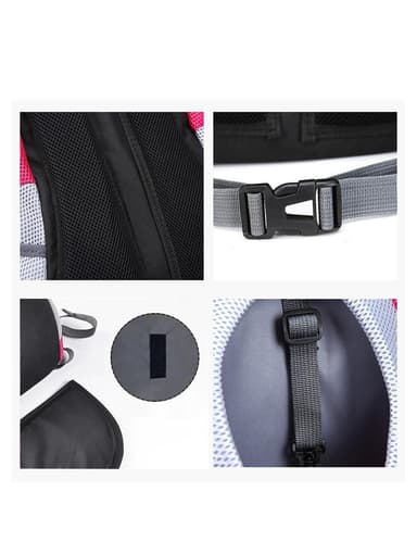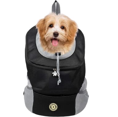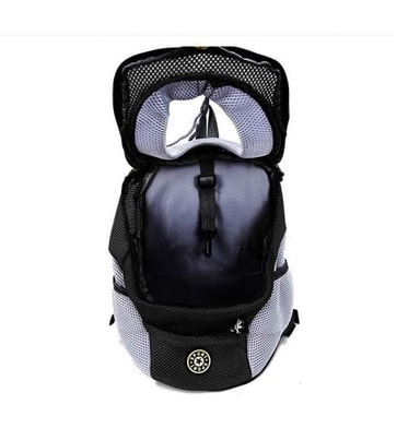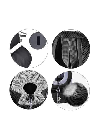Bekväm och säker design: Genom öppningen på ryggsäckens topp kan ditt husdjur sticka ut huvudet, så att det kan andas och se sig omkring helt normalt. Hålet kan dras åt med ett snöre. I transportväskan finns en rem med karbinhake som du fäster på kopplet, så att hunden in kan falla eller hoppa ur ryggsäcken.