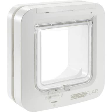 Husdjurslucka SureFlap Mikrochip Cat door Vit 1 stSelective entry – any animal can exit. The microchip reader is located on the outside of the cat flap only decoration image Up to 12 months battery life (4 x AA batteries – not included). A lowLäs mer om produkten