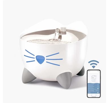 Uppmuntra din katt att återfukta hälsosamt med Catit PIXI Smart Drinking Fountain. Njut av innovativa funktioner som UV-C vattenklarningsteknik och fjärrkontroll tack vare PIXI-appen. App-delning Topp i rostfritt stål Andra toppskiktets LED-indikator för låg vattennivå, tom behållare, filterbyte & UV-C-klarning Supertyst och helt löstagbar pump Triple Action Filter UV-C-klarning Automatisk avstängning när tom