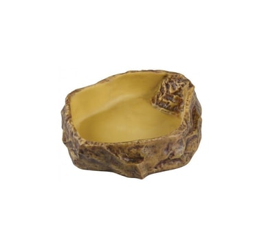 Dessa dryckeskärl har en mycket naturlig och realistisk stenliknande ytterfinish och en slät, bucklig yta inuti. Dryckesgods har en beläggning för att förhindra utveckling av skadliga bakterier och för att förenkla tvätt. Den neutrala, naturliga färgen gör det enkelt att integrera drycken i öknen, tropiska eller någon typ av terrarium. Mindre reptiler, groddjur och insekter kan lätt ta sig ur dricksskålen tack vare räddningsstegen inuti dricksskålen och undvika att drunkna. - det naturliga utseendet tillåter integrering i alla typer av terrarium - lätt att tvätta - stegen räddar syrsor och andra mindre terrariumvarelser från att drunkna - den icke-porösa och släta ytan absorberar inte skadliga bakterier - tillverkad av ätbart gummi - mycket fast, svårt att välta av större reptiler